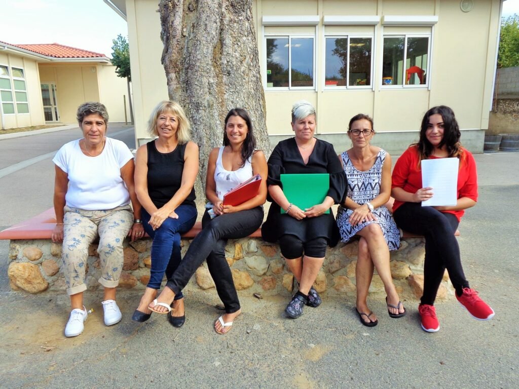 Personnel encadrant à la Cantine (de gauche à droite) : Véronique PENTECOTE, Sabrina ALARCON, Audrey MUNOZ, Ingrid COUDON et Janine ROBINE